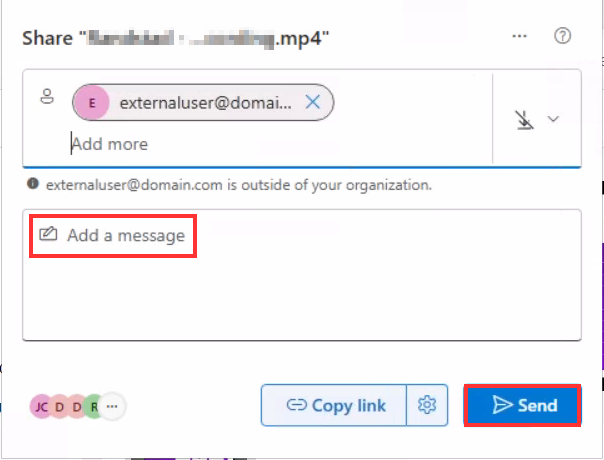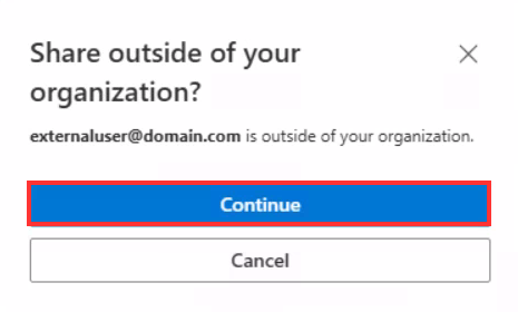 You will be presented with a warning that the person you are sending to is outside of your organization. Click Continue to proceed.