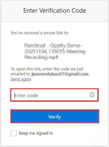 They will then need to enter the verification code when prompted, and click Verify to start playing the recording.